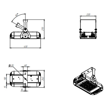 Габаритные размеры светильника, мм 430х250х270
