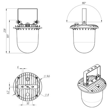 Габаритные размеры светильника, мм Ø146x228